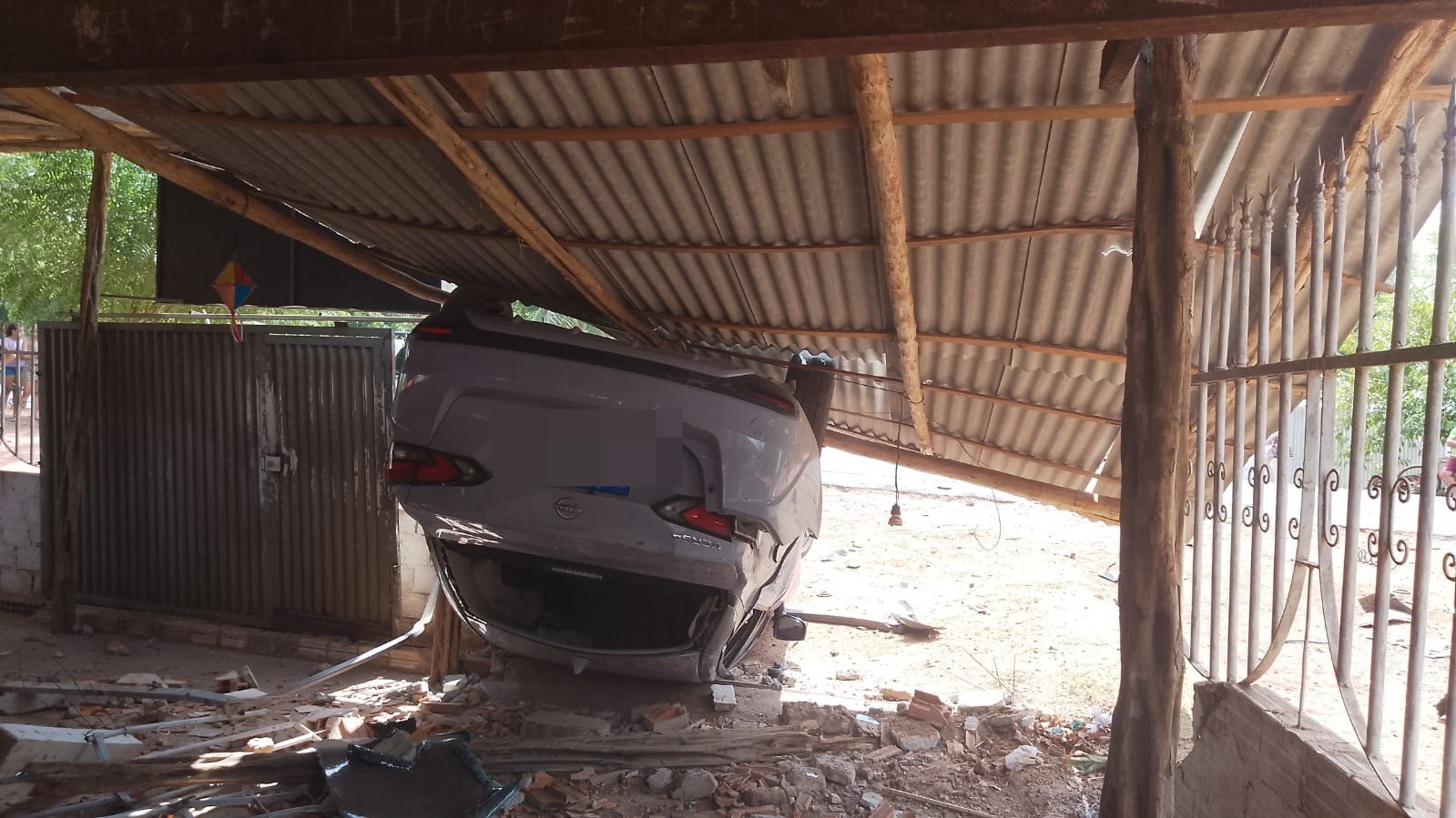 Carro capota e invade casa na Zona Leste de Teresina; parte do teto caiu